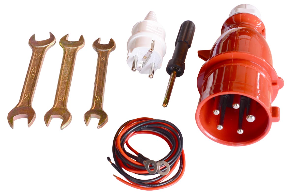| Комплектация | Электрическая вилка, блок АВР, предпусковой подогреватель, комплект проводов, ручки и колёса, |
