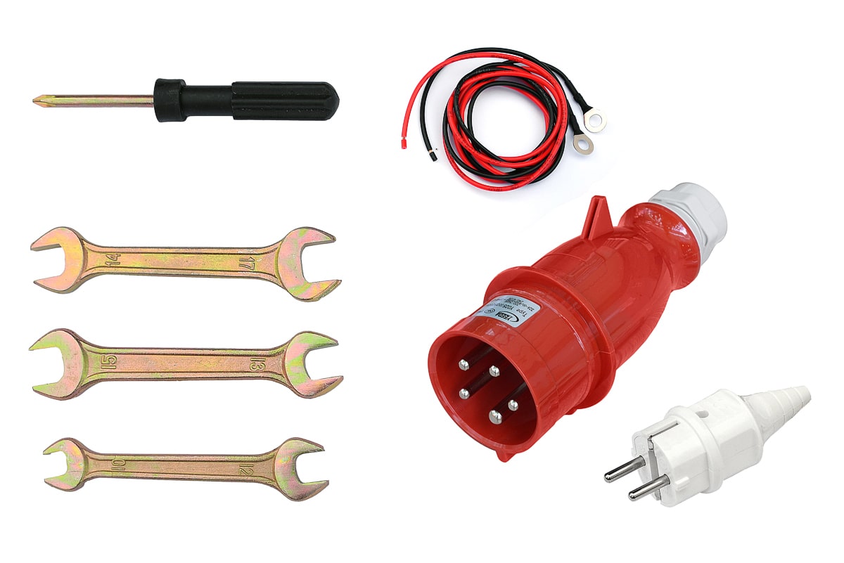 | Комплектация | Электрическая вилка, разъем для АВР, предпусковой подогреватель, комплект проводов, колеса. |