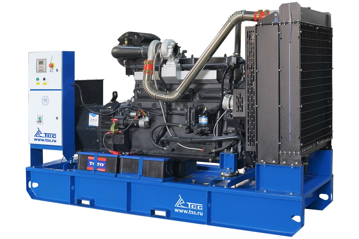Дизельная электростанция TSS Standart TTd 280TS, предназначена для выработки трёхфазного электрического тока напряжением 400 В, частотой 50 Гц и номинальной мощностью 200 кВт (250 кВА). Данная дизельная электростанция поставляется в открытом исполнении, что предполагает её эксплуатацию в подготовленном помещении, либо для размещения в контейнере. Это самый бюджетный вариант ДГУ, базовый вариант исполнения.